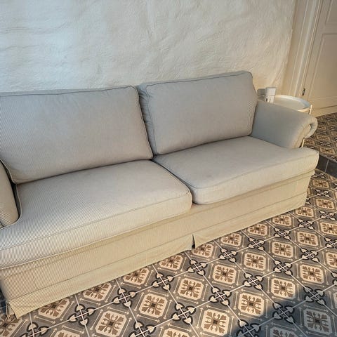 Selges uten armlener. Disse er tatt av og merker etter armlenenes skruer synes på siden, men det er ikke skjemmende.