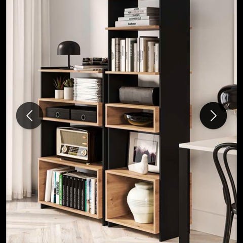 Zig reol med 4 hyller av gran med metallramme. Kostet 9 999kr ny på Bohus. Fremstår som ny da den kun har stått med pyntegjenstander i en stue.