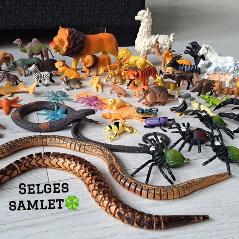Kasse med masse dyr - har ikke vært i bruk på flere år.