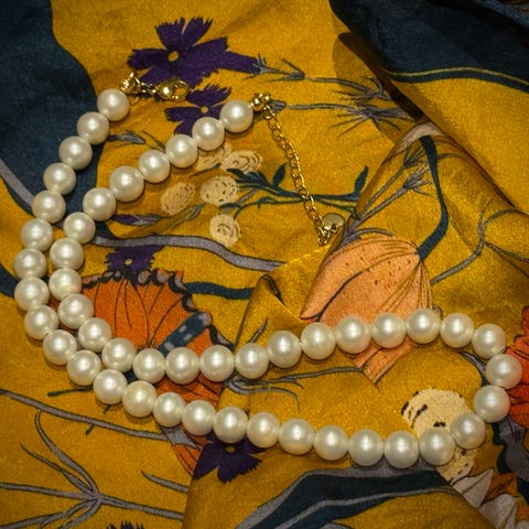 • 1 stk choker fra Gina Tricot med perler i hvitt og gull