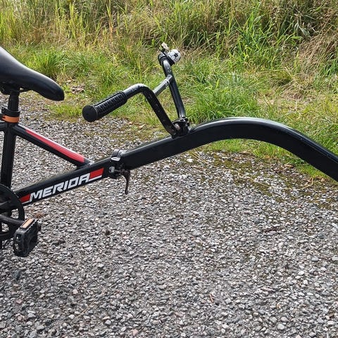 Nakamura M12 balanse sykkel for barn i svart og oransje farge. Sykkelen har luftfylte dekk og er designet for å hjelpe barn med å lære balanse før de går over til vanlig sykkel. 2 barn som har lært å sykkel på den - flott for barn mellom 2-5 år