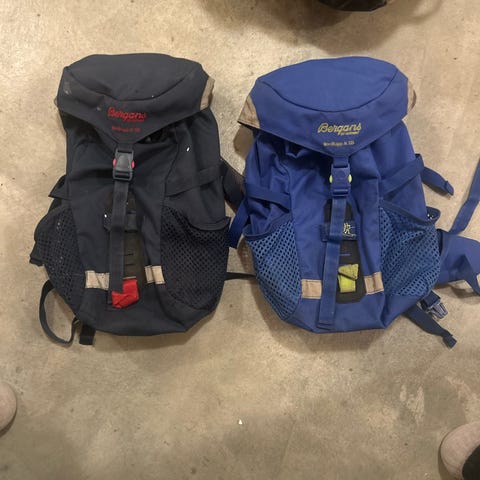 Passer fint som tursekk på barneskolen. Ideelt 5-8 år. Den har stropper som kan festes over bryst og ved midje, så den er god å bære. En klips har mistet en liten del. Den virker fortsatt, dvs stropp rundt midje kan klipses. Dette kan evt. byttes ut. Sekken selges derfor billig.