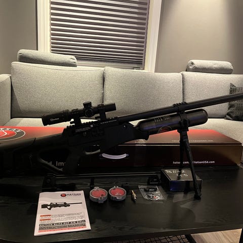 Tre magasiner og 118 skudd. To magasiner med 12 sludd og ett magasin med 25 skudd.