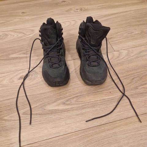 Kun prøvd to ganger og da kun på asfalt/senter, så fremstår som ny. Fantastisk varm sko som holder på varmen helt ned i -32 grader. Har også gore tex som holder deg tørr.