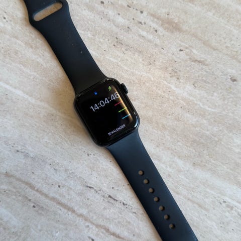Apple Watch Series 4 smartklokke med svart reim. Passer for daglig bruk og trening. Velger å selge fordi jeg glemmer å bruke den. Da tenker jeg den kan få nytt liv hos noen andre. En liten ripe nede i høyre hjørne(se bilde). Ripen kom før jeg fikk satt på beskyttelses skjerm. Men etterpå har alltid beskyttelse vært på. Ripen er veldig liten og kan så vidt ses når man ser etter. Batteriprosenten er på 97% så regnes som helt ny.