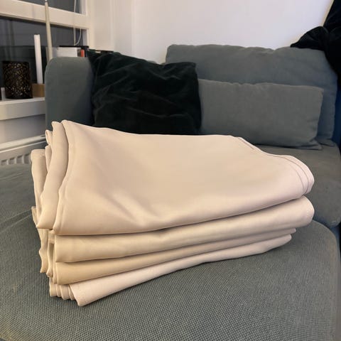 - Standard ferdigsydde gardiner i beige – tidløs og nøytral farge som passer til mange romstiler.