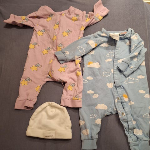 KappAhl babyheldrakt i størrelse 50 med flerfarget mønster. Passer for både jenter og gutter.