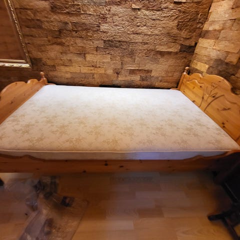 Pent brukt jernseng selges med 1 rammemadrass og 1 madrass, samt 2 søte nattbord