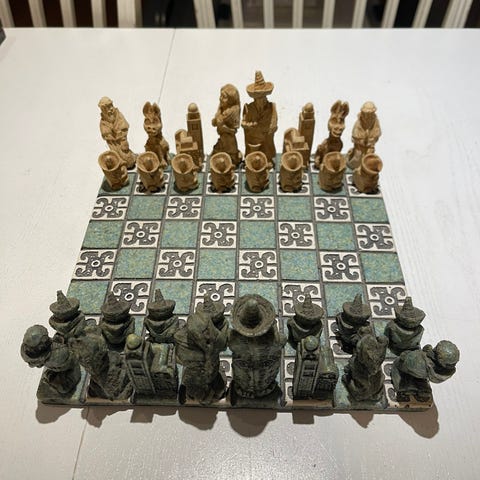 Sjakkspill med håndmalte figurerer WW2 teman.