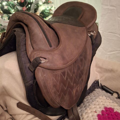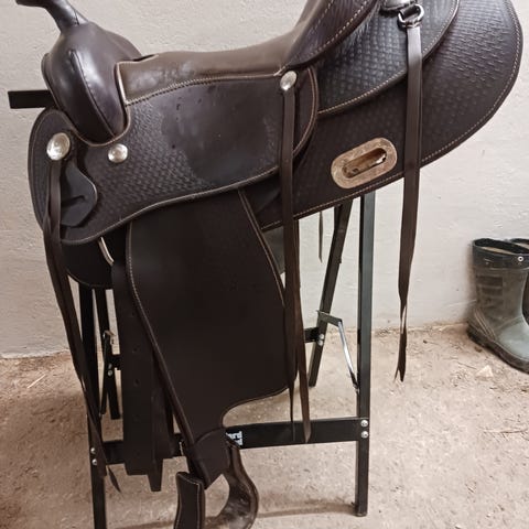 Myk, god og lett bomløs sal til salgs. Sitter godt på alle hester. Pent brukt. 17,5 tommer.