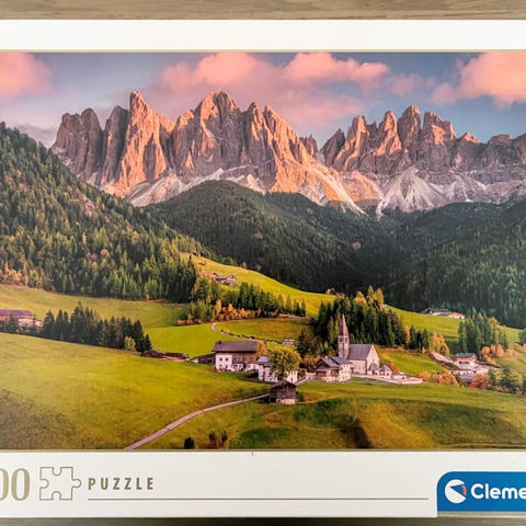 1 000-brikkers puslespill med motiv av et fint landskap.