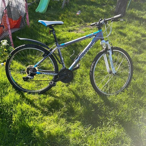 Selger en Diamant Radiant Cut 15.00 C i grei og brukbar stand. En solid og komfortabel hybridsykkel som passer både til bykjøring og grusvei.