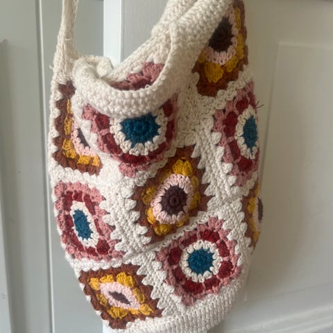 Unik heklet håndveske med fòr