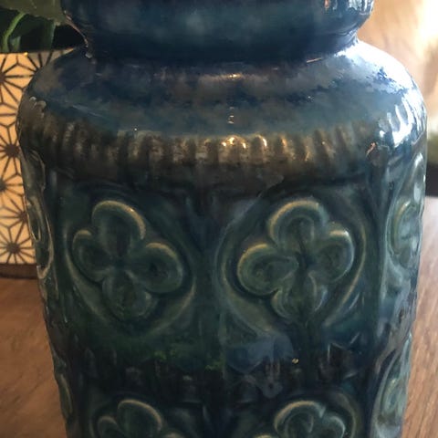 Veldig lite brukt vase, tysk keramikk. Hel og pen. Høyde 19 cm, diameter ca 7 cm.