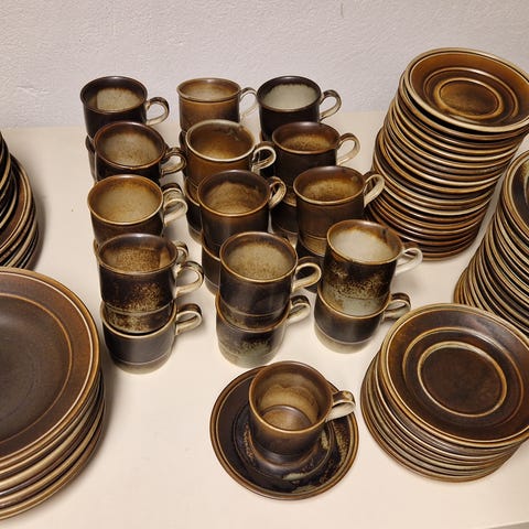 8 kaffekopper m. skål fra Porsgrunn Porselen. Merke Lava. Sender ikke.