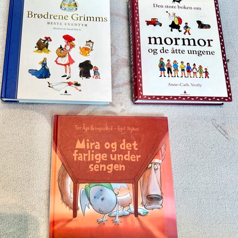 Bøkene har varierende størrelse, farge og materiale, egnet for barn i alder 0 - 8 år