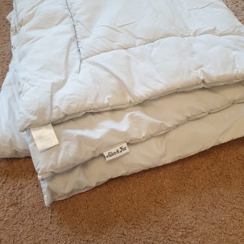 Alice & Fox Enhjørning Teppe i mykt materiale, formet som en enhjørning med flerfarget man og hvit kropp.