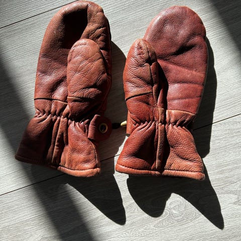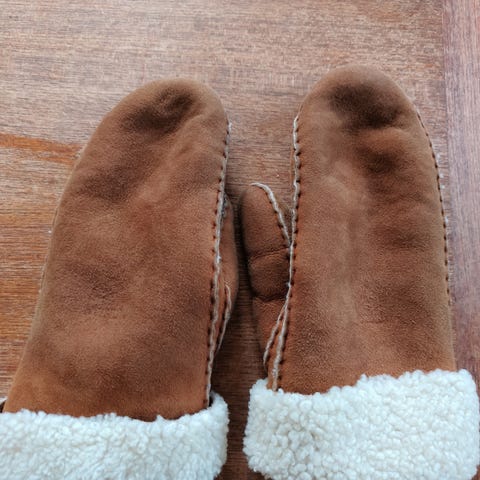 Gode, romslige semskeskinn votter veldig gode og varme, kjøpt i USA.