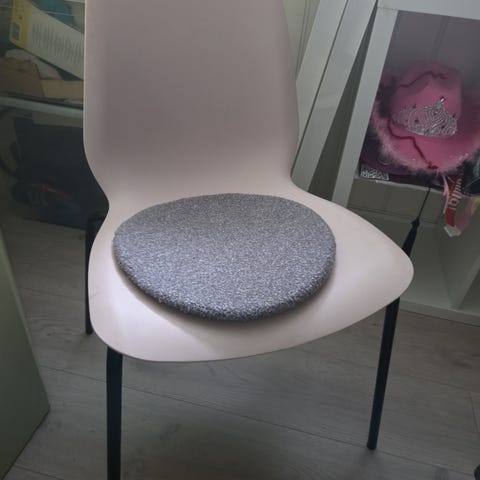 6 spisestoler gies bort mot henting. 4 stk er like med brunt sete, kjøpte 2 ekstra med hvite seter, nesten ikke brukt
