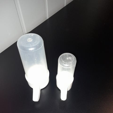 Plastisk fuglefôrautomat med rød lokk og bred bunn for stabilitet. Egnet for utendørs bruk til mating av fugler. Lett å fylle og rengjøre.