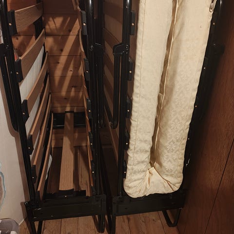 Pent brukte madrasser og overmadrass. Alle trekk blir vasket før salg