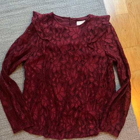 Lengde på bluse for størrelse Small: 57 cm. Normal og str. Kun brukt et par ganger. selges da den er for liten. Kostet 1200kr ny.
