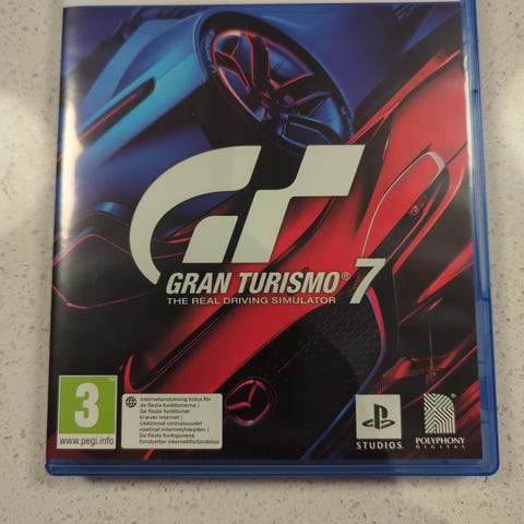 Gran Turismo 7 er et bilsimulatorspill for Playstation 5. Spillet tilbyr realistisk kjøreopplevelse med detaljerte biler og baner.