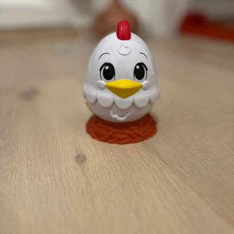 «Høne» fra Spire. Hønen legger egg som snurrer ned spiralen og lager all slags mulig leven. Ikke en stor fan av plast som synger, men her er det så mye at det blir moro.