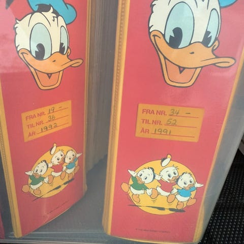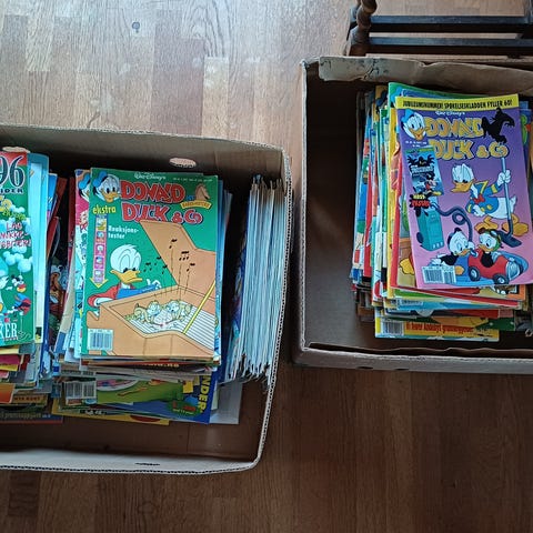 Selger to banankasser med Donald Duck blader fra 80, 90 og 2000 tallet.