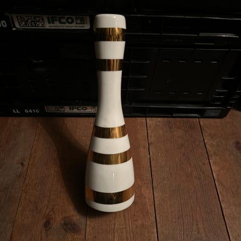 Selger en ubrukt Kähler Omaggio lysestake med høyde på 24 cm i gullfarge. Hel og fin.