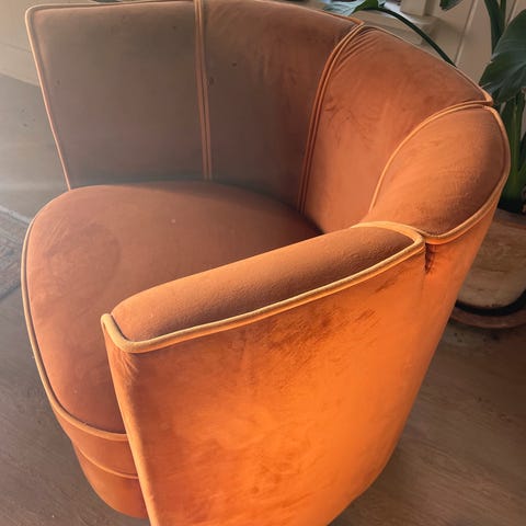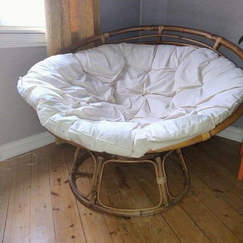 Kule og behagelige lenestoler i blå velur. Sitte høyde 47 cm. God plass til å krølle bena opp i stolen. Litt slitne/møkkete på armlenene, men antar fullt mulig å vaske bort. Om ikke eller du ønsker et annet stoff så kan jeg anbefale en møbeltapetserer utenfor Hønefoss som henter og leverer i Oslo. Pris per stol.