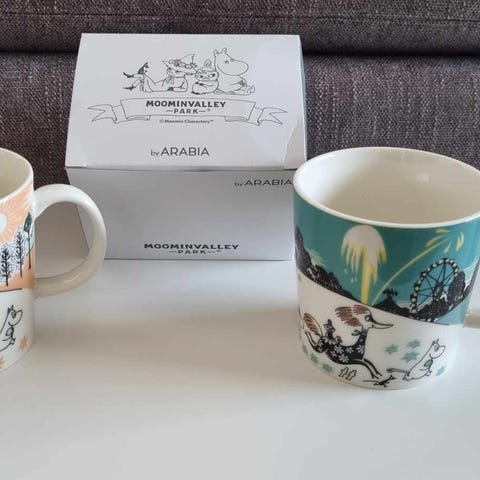 Utgåtte mummikopper selges samlet. Rosehage iuten etikett i veldig god stand og Mummidalsparken Japan 2019 ny med etikett selges samlet til fastpris 1400 kr plus frakt.