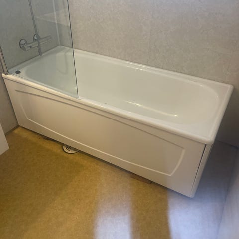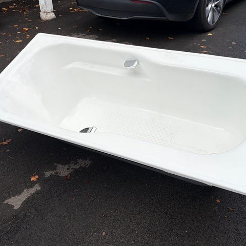 Hvit rektangulært badekar i Corian. Har sprukket. Håper noen kan ha glede av materiale eller at det kan brukes til noe annet. Er meget tungt, så sterke muskler trengs for å få det ut.