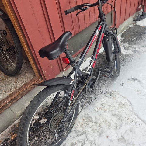 Hel og grei barnesykkel til salgs. Virker greit, men trenger litt vedlikehold. Har satt på nytt sete.
