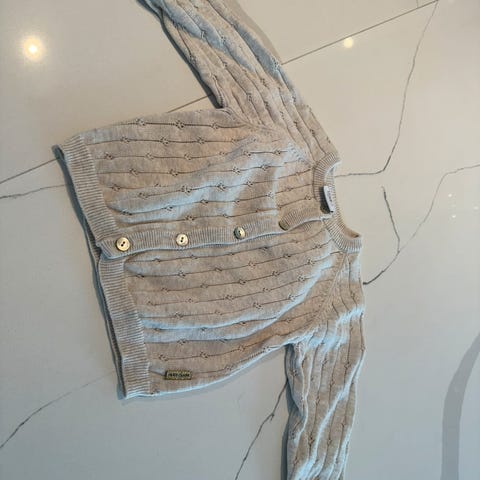 Hust & Claire mørke blå cardigan i bomull, størrelse 56. Jakken har knappelukking foran.