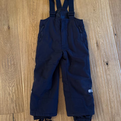 Buksen er kun brukt til å stå alpint med. Strikkene under skoene har vi dessverre fjernet. Det mangler også en knapp. Det er gummi på innsiden som gjør at de sitter godt rundt f.eks. en slalåmstøvel.