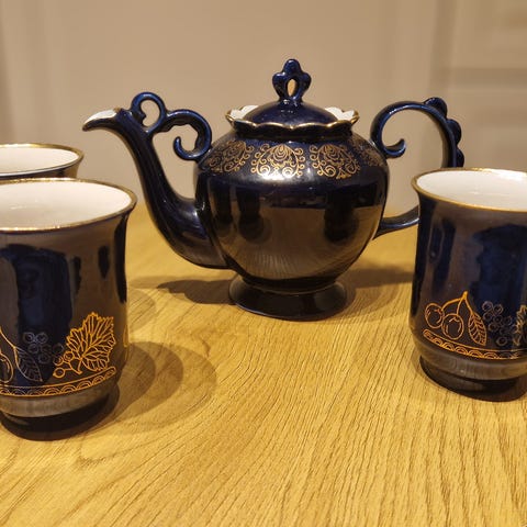 Vintage porselensett fra USSR. Kaffe-/tekanne og vase – vintage porselen.