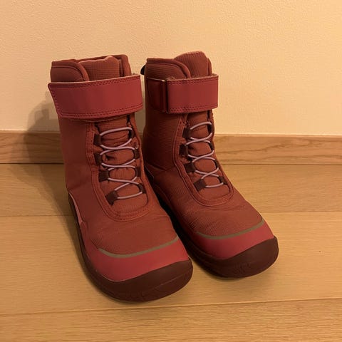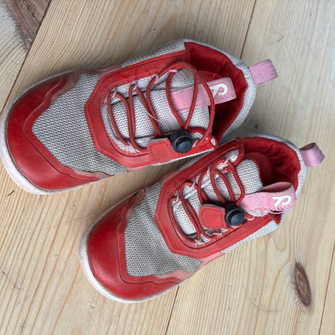 Reima barnesko for jente i størrelse 32. Skoene har en korallfarget overflate med justerbar borrelåsrem for god passform. Sålen er hvit med mønster for bedre grep. Sandalene er fra Reimas barfotserie. De er lette og fleksible og har god plass til tærne. Helt nye.