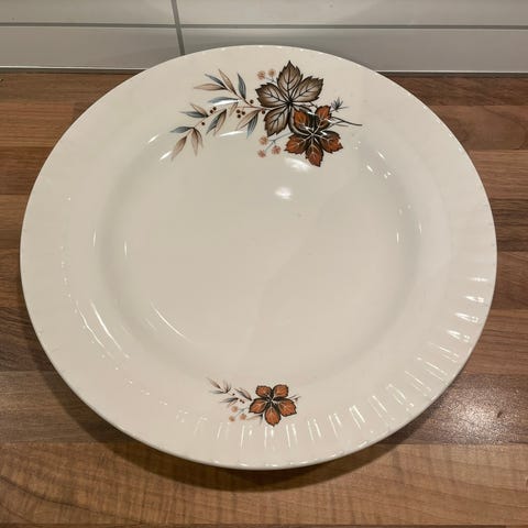 Selger 2 stk serveringsfat fra Figgjo Høstløv. Ene fatet er rundt og det andre er avlangt.