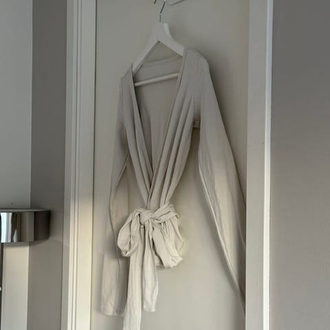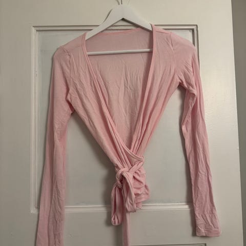 exercere lululemon yoga yogawrap ballet balletwrap genser topp overdel rib vanilje grå hvit beige rosa trening treningstopp dame kvinne knyting crossover langermet