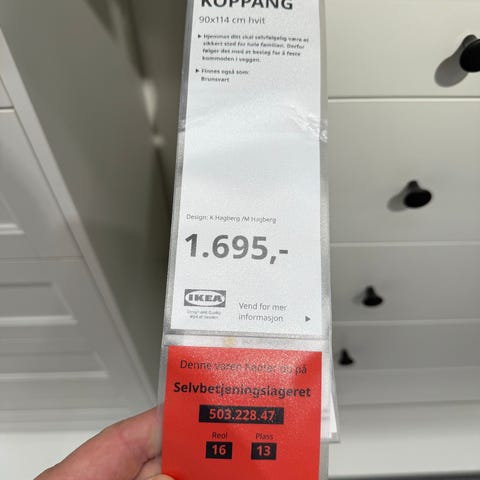 Kommoden tror vi heter Nordli, og kostet ny rundt 5000,- på IKEA.
