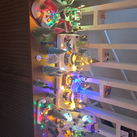 Denne har både bevegelse og lys. Et roterende juletre. Svært stille og har timer. Har mange julebyer i denne serien, som jeg er veldig fornøyd med.