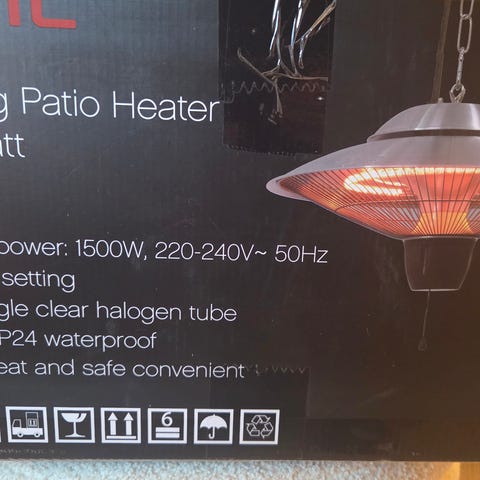 Terrassevarmer med effekt på 2100 W. Designet for utendørs bruk for å gi varme på terrasser og lignende områder.