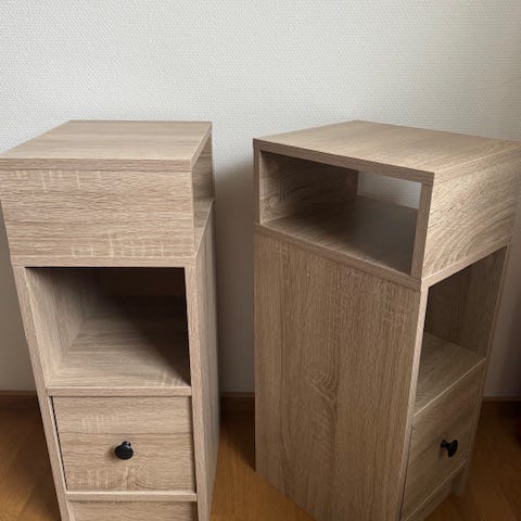 1 år gamle nattbord selges samlet eller hver for seg. 200kr pr stk eller 350 for begge