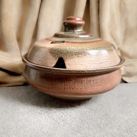 Nydelig keramikk fra Lannem. Farge dus rosa og mosegrønn.