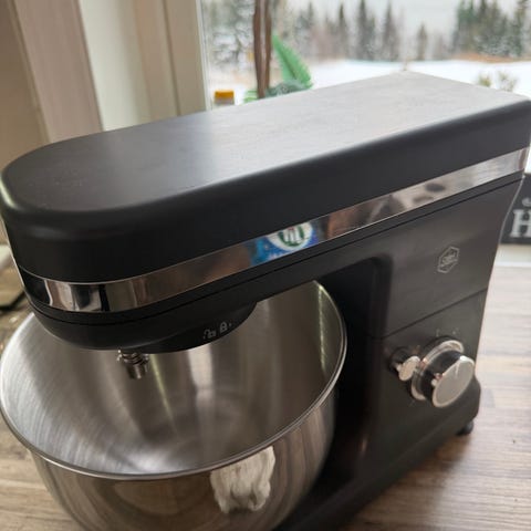Pent brukt svart Point Pro kjøkkenmaskin selges. Inkluderer 6,7 liter stålbolle med sprutlokk, samt visp, eltekrok og K-spade. 1800 W motor.