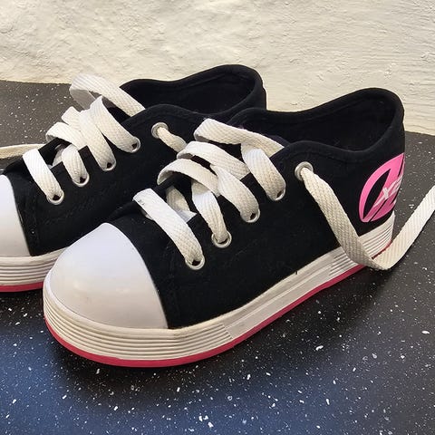 Heelys rullesko for barn i størrelse 30. Skoene har integrerte hjul som gjør det mulig å rulle, og er designet for unisex bruk. Fargene inkluderer mørkeblå med rosa og blå detaljer. Egnet for barn som ønsker sko med rullefunksjon.