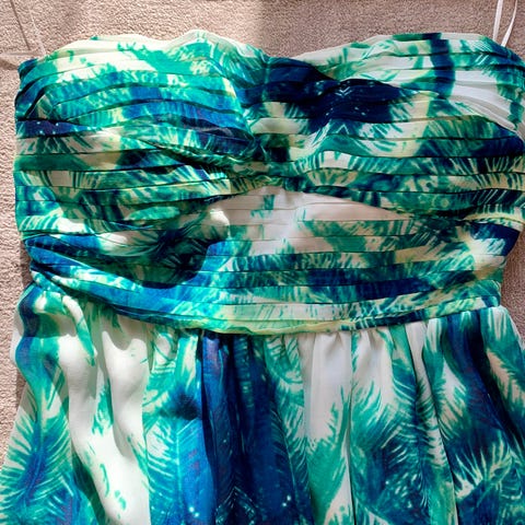 Lekker topp med lurex tråder og nydelige knapper . Skjørt samme farge som halsen på toppen ,dyp blå ,spesiell fin .