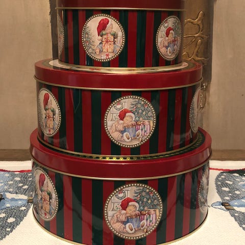 Pent brukt kakeboks til julekaker. Laget i blikk.