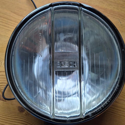 Bosch halogen-lykt og harddeksel selges. Ikke rust/skader, glasset er helt.